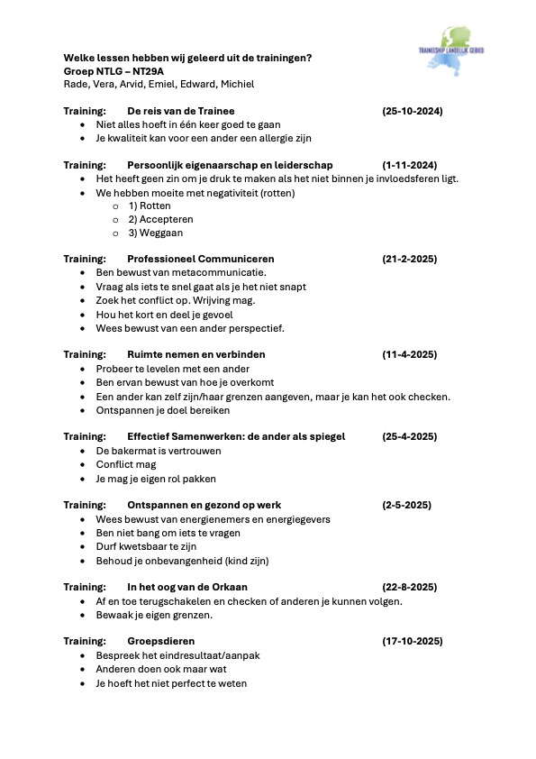 Daarnaast zijn er verschillende trainingen waar ik aan deel heb genomen. Hieronder een overzicht van een aantal trainingen die we hebben gevolgd en de lessen die we hieruit hebben geleerd: